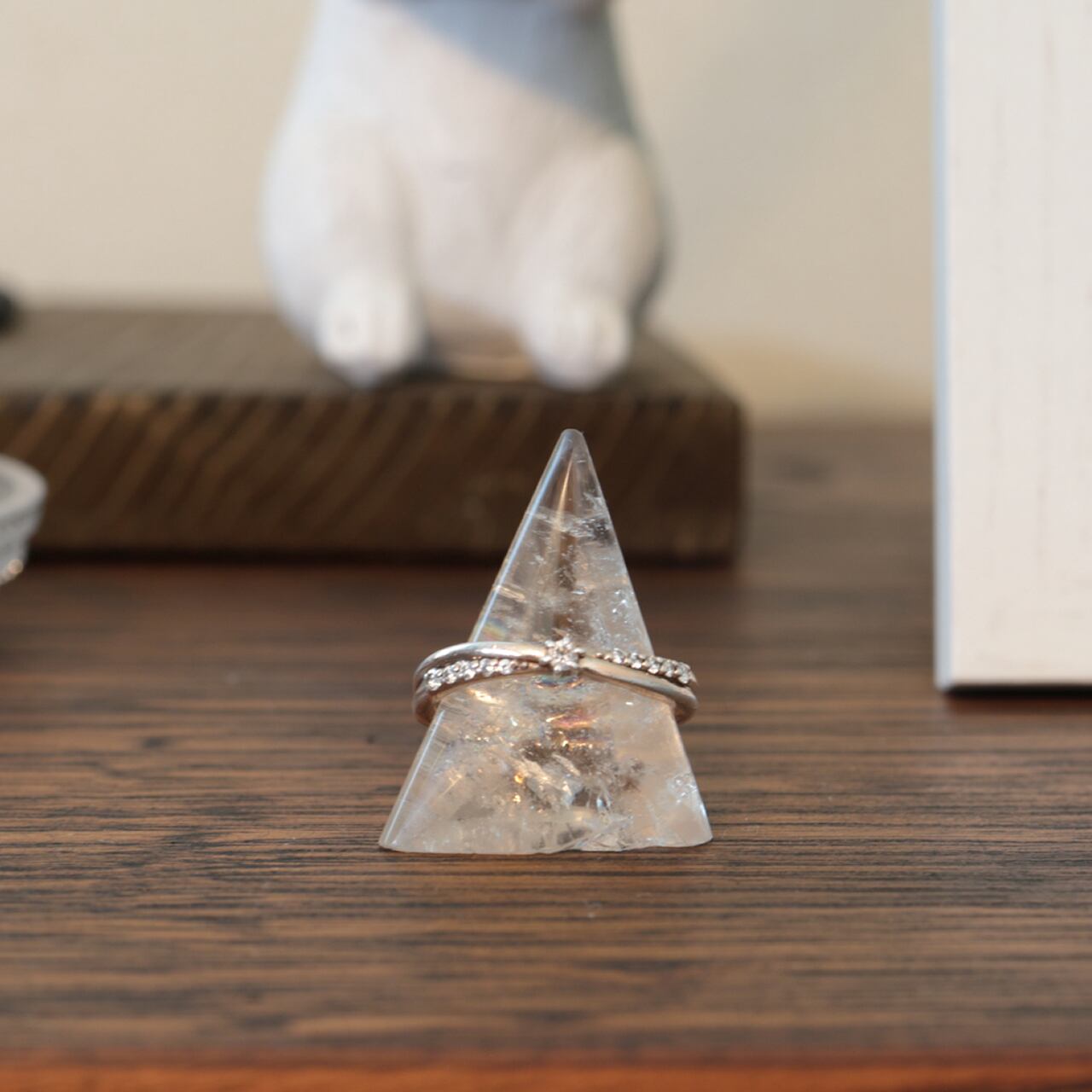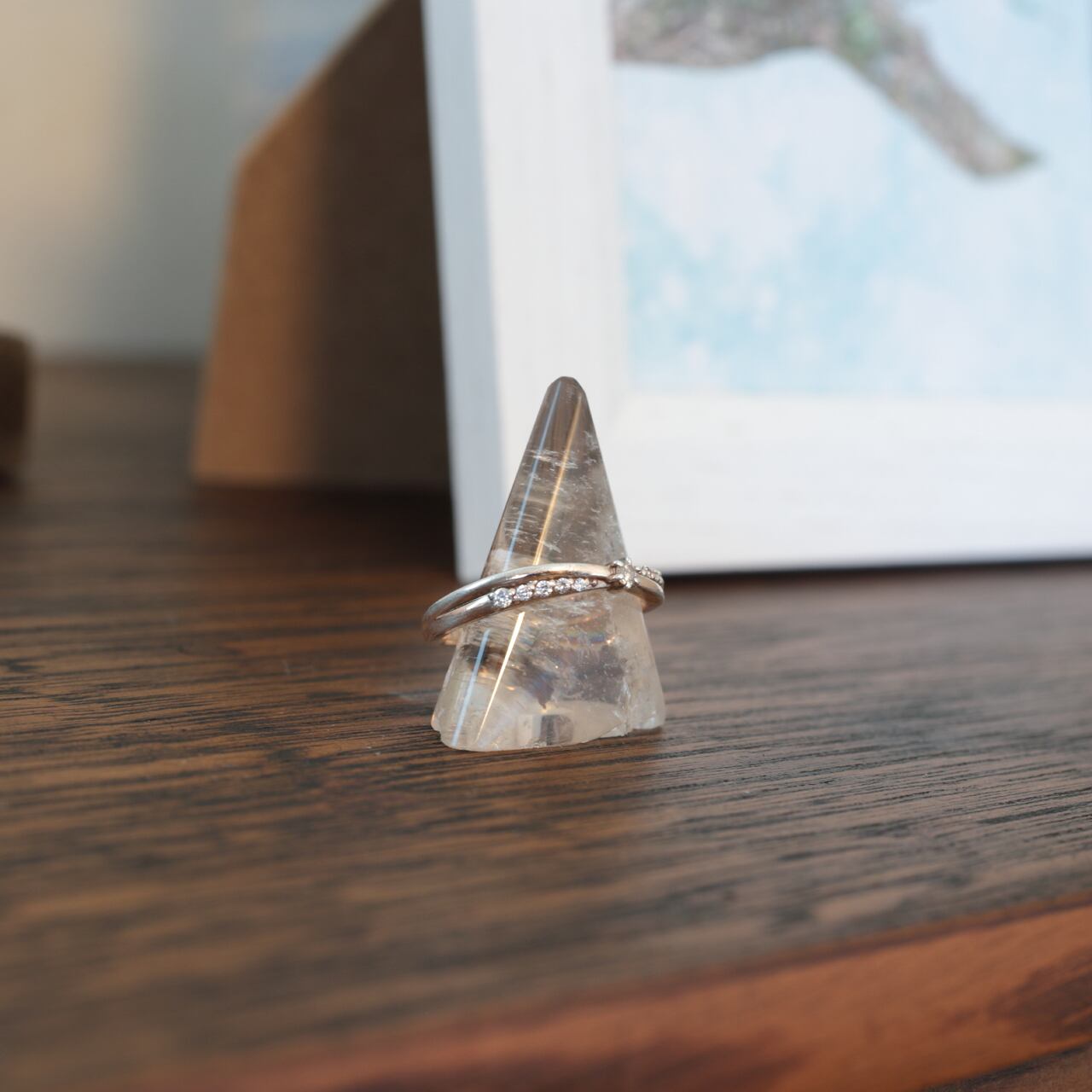 指輪と一緒に置くことでふと目に入った時、少し気持ちを和らげてくれるような印象があります。